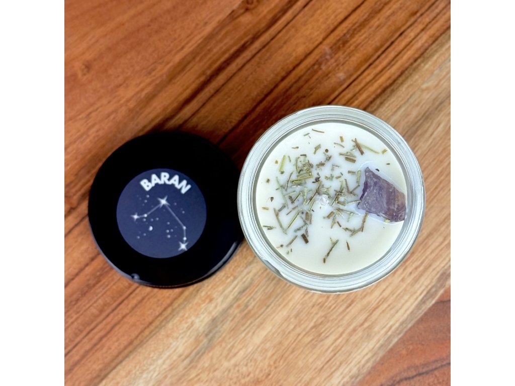 Ručne liata sójová sviečka vytvorená pre znamenie Baran. Spája dynamickú energiu ohnivého živlu s upokojujúcimi vibráciami ametystu a osviežujúcou silou rozmarínu. Podporuje sústredenie, vnútornú rovnováhu a pomáha harmonizovať intenzívnu energiu Baranov.