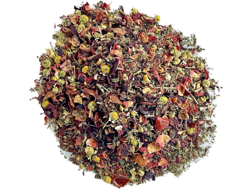 ZLOŽENIE: Ibištek - kvet( Hibisci flos), Šípka - plod (Rosa canina), Medovka lekárska (Melissae herba), Rumanček kamilkový-kveť (Flos chamomillae),