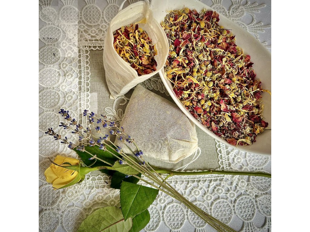 ZLOŽENIE: Ruža - lupene, Levanduľa, Rumanček kamilkový, Nechtík lekársky
