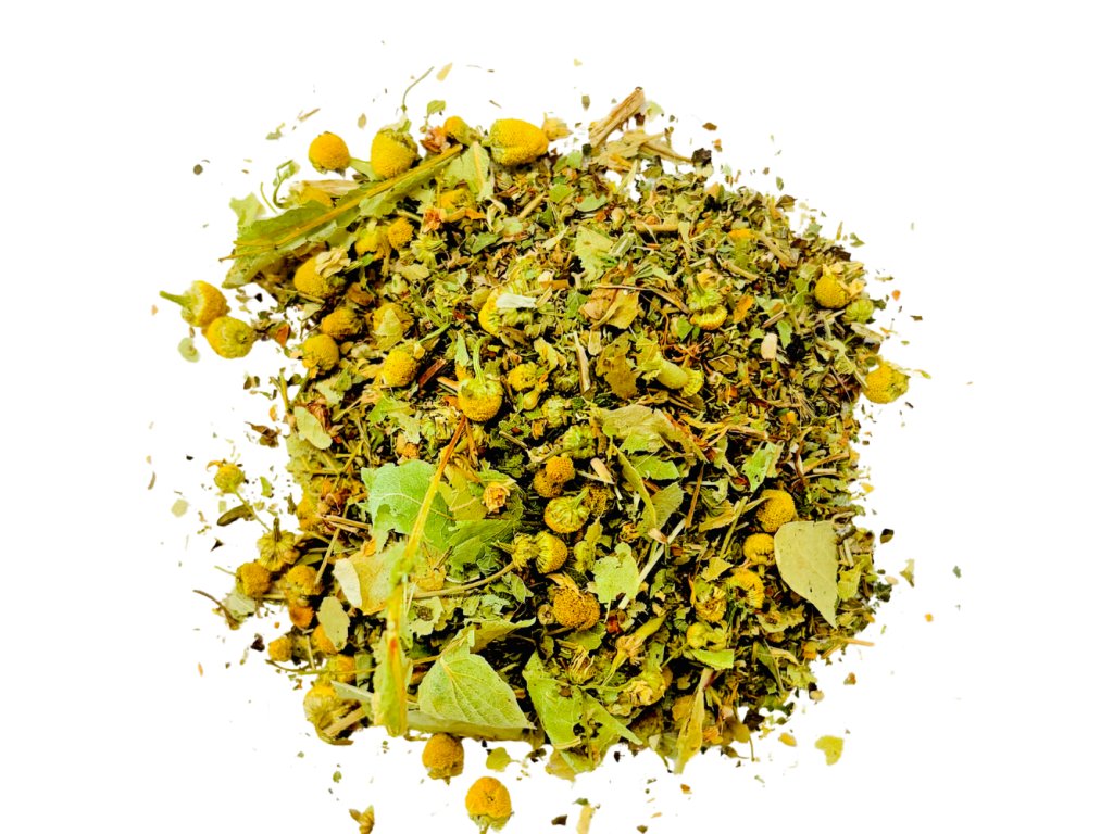 🥄 Použitie: 1 ČL zmesi zaliať 0,25 l horúcej vody, lúhovať 6–8 minút. Podávať 1 šálku večer pred spaním.