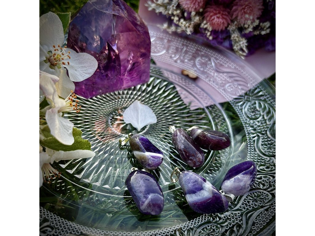 AMETYST ako kameň duchovnej očisty a meditácie posiluje pamäť, koncentráciu a pozornosť. Ukľudňuje, uvoľňuje, pomáha pri učení, odstraňuje úzkosť, depresie, strach a hnev. Posilňuje silu vôle a schopnosť stanoviť si reálne ciele.