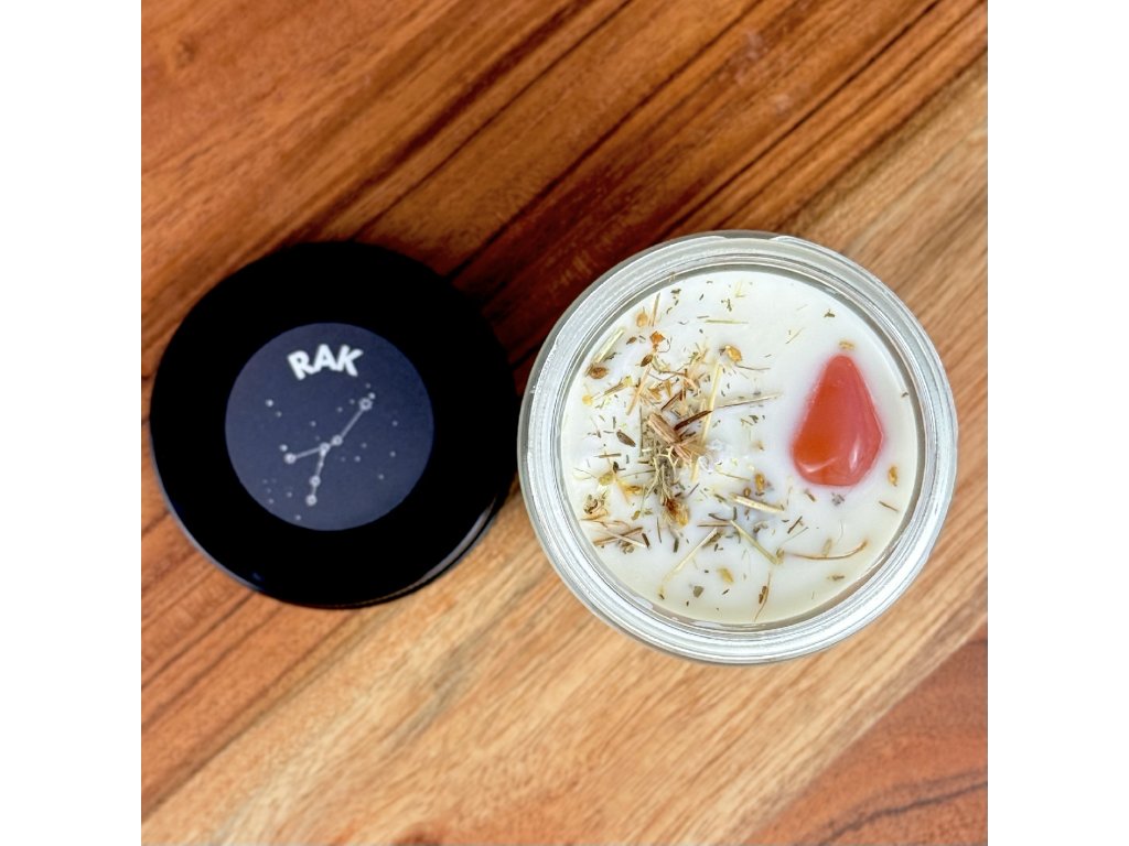 Ručne liata sójová sviečka je určená pre znamenie Rak. Kombinuje energiu karneolu, ktorá podporuje odvahu, vitalitu a emocionálnu rovnováhu, s jemnou a upokojujúcou vôňou rebríčka, ktorý pomáha udržiavať harmóniu a vnútorný pokoj. Sviečka je ideálna na podporu sebavedomia a citovej stability typickej pre Raky.