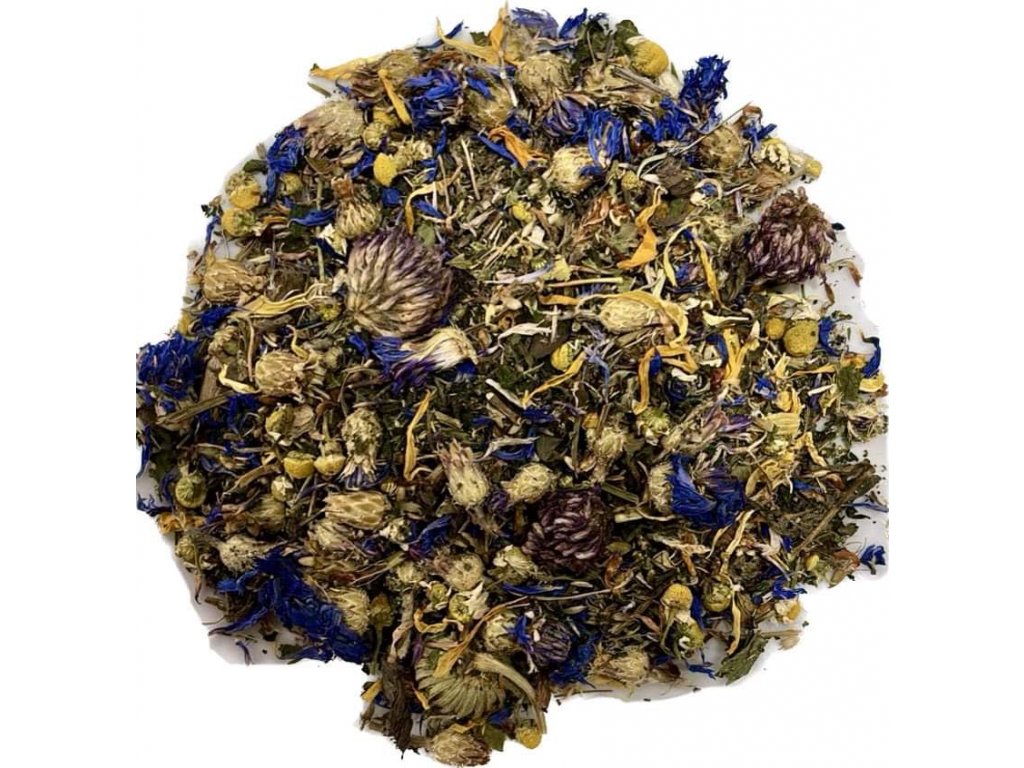 ZLOŽENIE: Nevädza poľná, Nechtík lekársky, Rumanček kamilkový, Žihľava, Materina dúška, Ďatelina lúčna