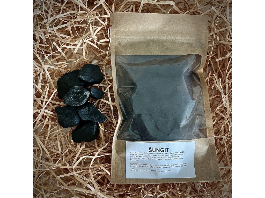 ŠUNGIT - prečisťuje kohútikovú vodu od nežiadúcich látok, baktérií, chlóru a ťažkých kovov. Vstrebáva všetko negatívne, škodlivé a zlé