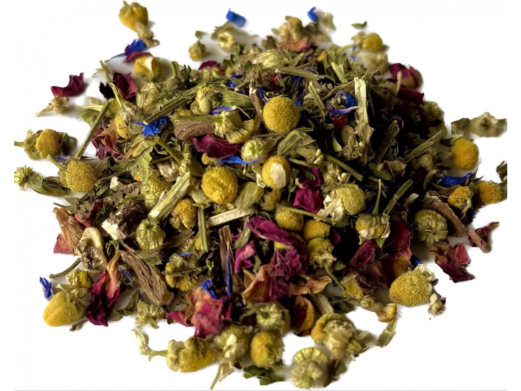 ZLOŽENIE: Medovka lekárska, Rumanček kamilkový, Nevädza poľná, Púpava lekárska - koreň, Ruža - lupene