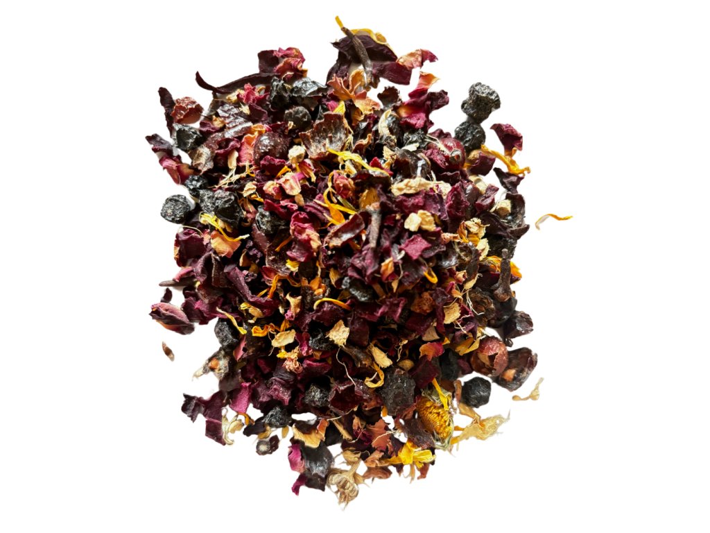 Zloženie: Cvikla kúsky, Zázvor, Klinček, Šípka, Ríbezľa, Nechtík, Lupene ruží
